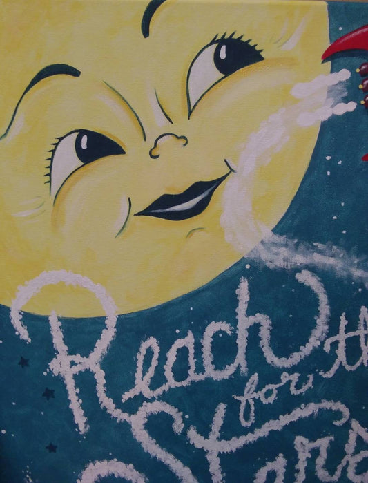 Custom Reach for the Stars Moon Painting 16x20 hand painted, moon face, cute, kids room art, nursery decor, child gift