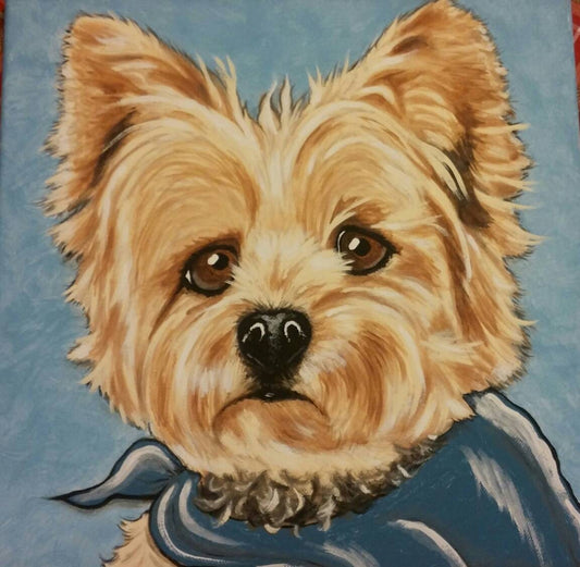 Custom Pet Portrait Painting 12x12 handpainted Pet Memorial, painted dog, yorkie, pug, dog owner gift, painting of pet