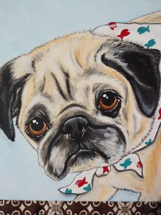 Custom Pet Portrait Painting 12x12 handpainted Pet Memorial, painted dog, pug, dog owner gift, painting of pet