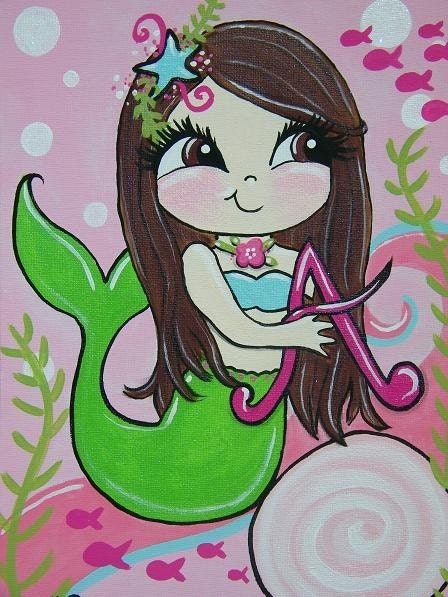 Custom Big Eyed Mermaid Painting for Kids Room 11x14