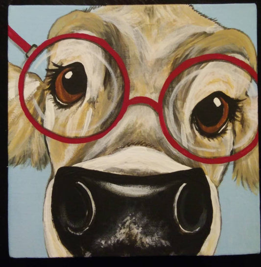 CUSTOM Animal in Eyeglasses 12x12 CUSTOM hand painted Art, eye doctor artwork, specs, glasses on cute animals