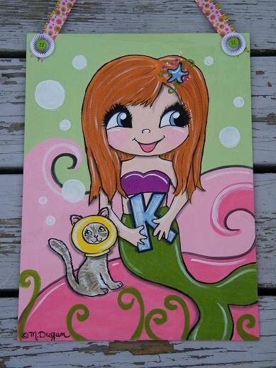 Custom Big Eyed Mermaid Painting for Kids Room 8x10 Children's Decor, cute mermaid, painted