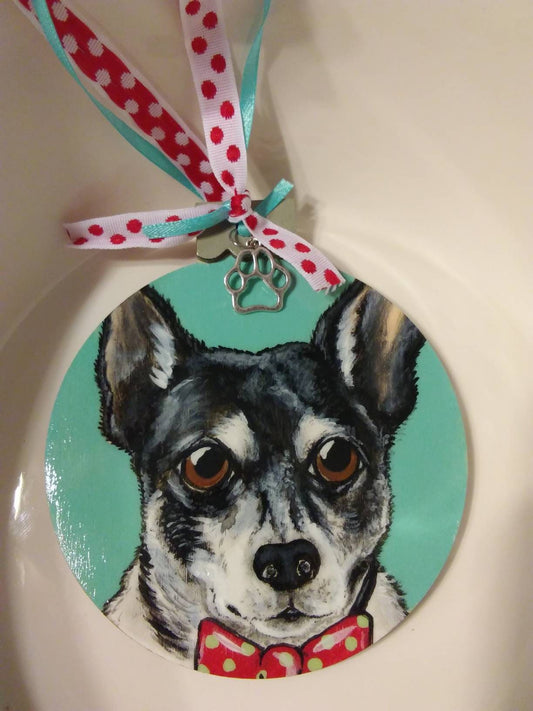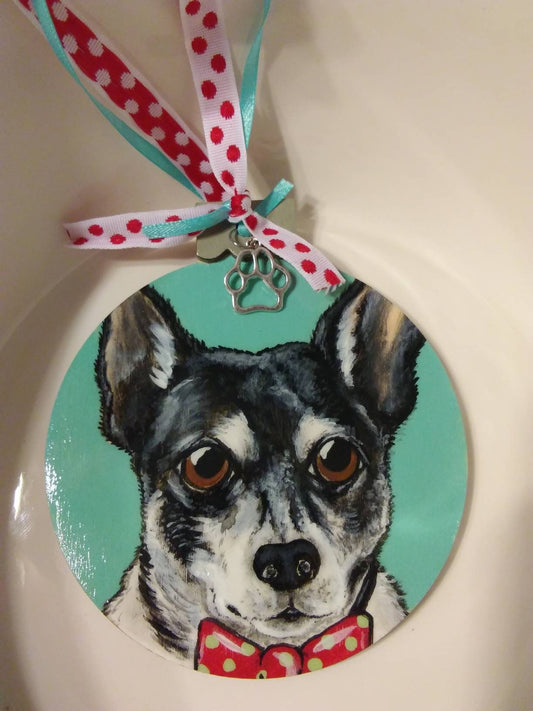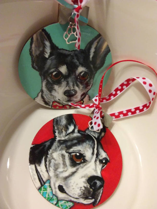 Custom Pet Portrait Christmas Ornament - Hand painted, Pet memorial, personalized, Christmas gift, pet lover, chihuahua