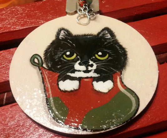 Custom YOUR Cute Pet in Stocking Portrait Christmas Ornament - Hand painted, Pet memorial, personalized, Christmas gift, pet lover