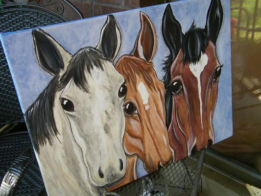 Custom Multiple Pet Portrait Painting 16x20 handpainted pet memorial, pet lover gift, horse art, dog art, personalized art