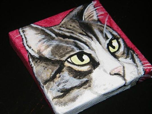 CUSTOM Painted Mini Pet Portrait 3x3 , miniature artwork, pet painting, cat, dog, pet memorial